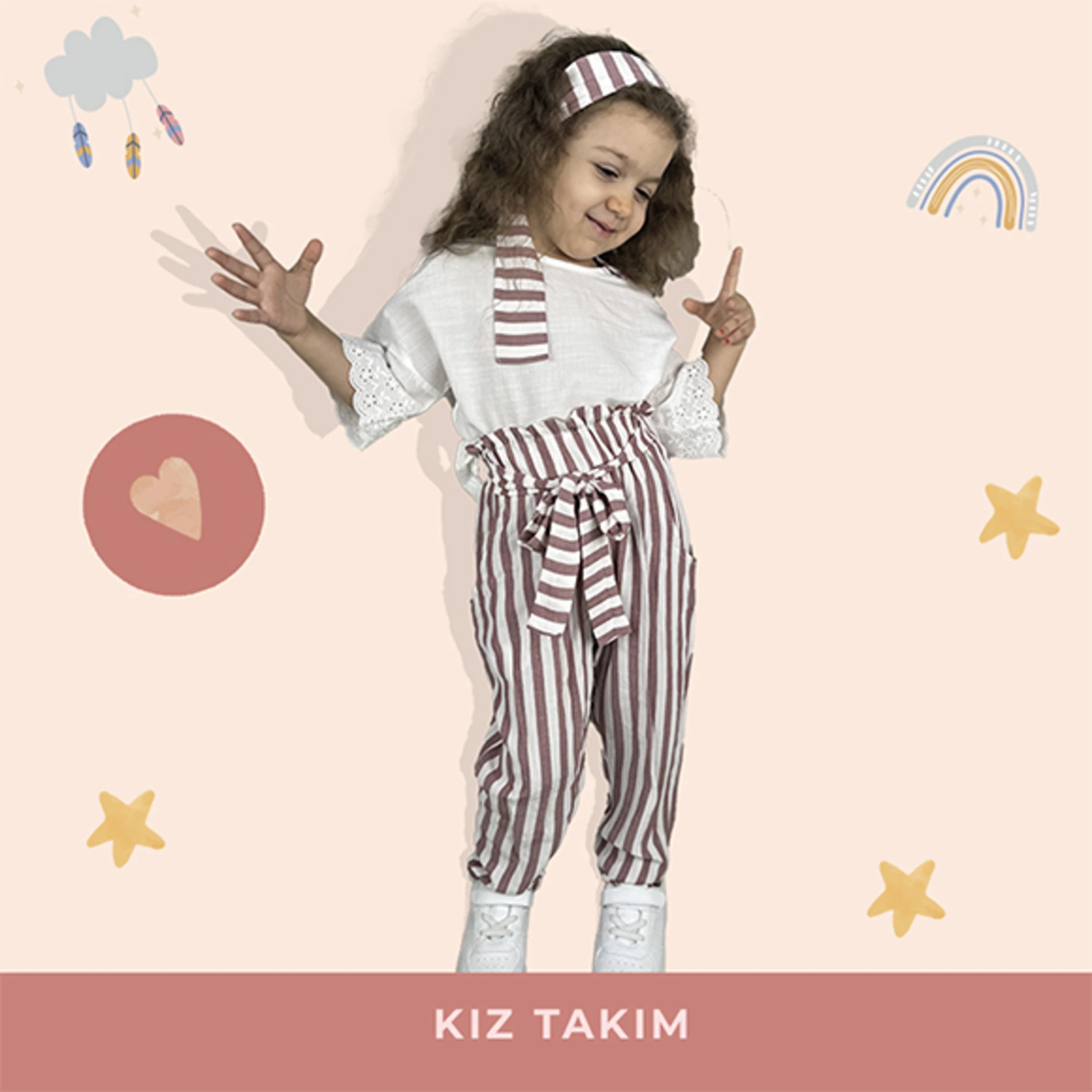 Marka Fiyonk Detaylı 3 İp Şardonlu 3'lü Kışlık Kız Bebek Takım - YAVRUAĞZI
