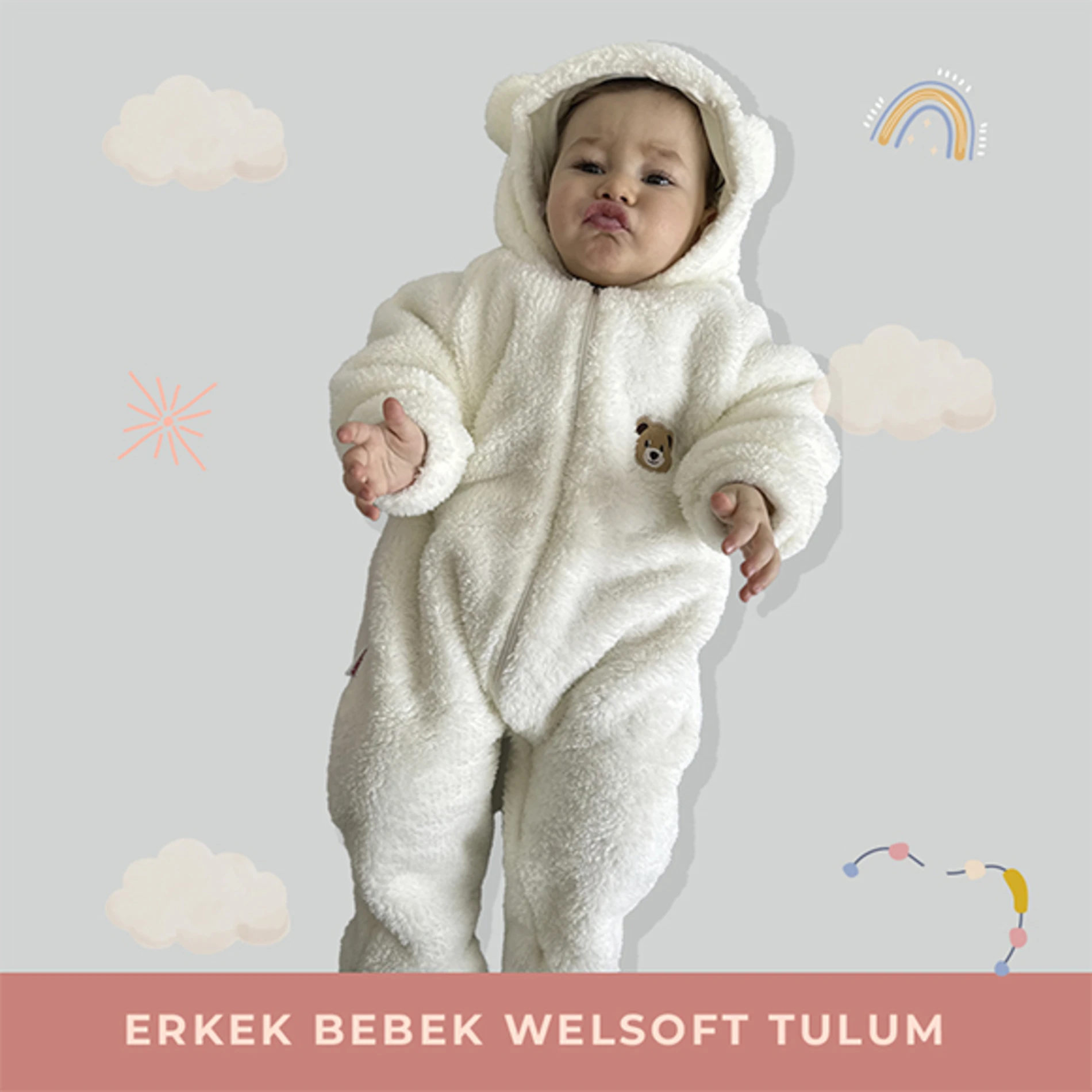 Ayı Desenli Kışlık İçi Polarlı Bebek Kozmonot Tulum Kışlık Unisex Tulum - KAHVERENGİ